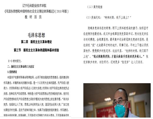 一是聚焦防“疫”,防疫教育进课堂。开学初,通过“共同战疫,学在前列”一封信在超星学习通平台发布对学生提出了学习要求。在线上教学过程中,《概论》、《基础》课推出了教材活页,将防控疫情斗争中先进典型人物和事迹与教材内容有机结合,对学生进行生命教育、爱党爱国爱人民爱社会主义教育。有的《概论》课老师把书本知识与当前我国在防治新冠肺炎病毒过程中所展现出来的构建人类命运共同体的大国担当行动结合起来,以理论联系实际的方式把时事政治引入课堂,同时通过学生现场制作抗疫作品的方式一改往日《概论》课的枯燥,把思政课基础知识与爱国主义精神一并植入学生头脑。在《形势与政策》课上,通过人民网师生共同观看教育部“全国大学生同上一堂疫情防控思政大课”。《形势与政策》课还把疫情防控中的鲜活事例融入到有关专题教学中。