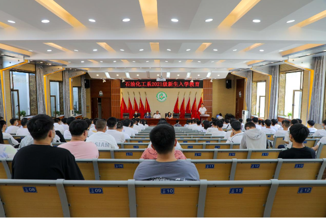 9月11日下午,石油化工系召开2021级新生入学教育会议。会上,将习近平总书记“七一”重要讲话精神融入新生入学教育。系党总支书记、副主任吴景禄做了新生入学教育报告。