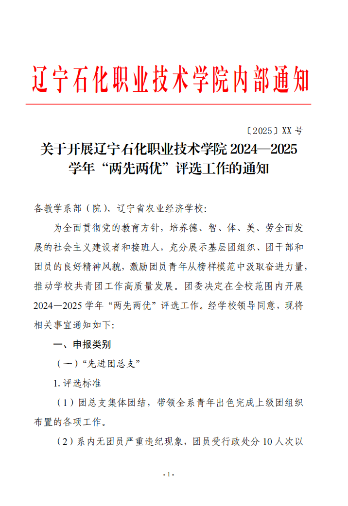 关于开展星空·综合(体育中国)官方网站 2024-2025学年“两先两优”评选工作的通知