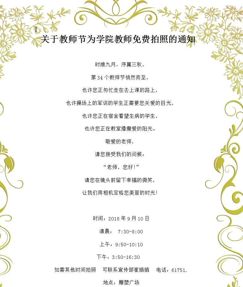 关于教师节为学院教师免费拍照的通知