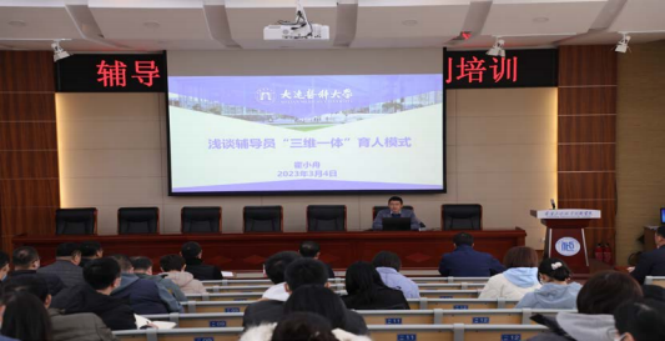 霍小舟教授以《浅谈辅导员“三维一体”育人模式》为题,借助理论导入、案例分析与工作经验相结合的方式,重点讲解价值引领、学业指导、生涯规划三大模块。本次培 训主题鲜明、重点突出、内容精彩。与辅导员工作实际密相关,富有理论性、思想性和实践性,既是辅导员工作能力提升的实践指南,又是新学期开展工作前的一场及时雨,为我院专兼职辅导员学生管理工作带来了新营养、新思路、新 格局、新举措。接下来,辅导员素质能力提升培训班将会持 续开展,通过邀请专家授课、开展辅导员素质能力大赛、辅导员成长论坛、辅导员沙龙等,提升辅导员职业素质能力,加强辅导员交流,提升辅导员归属感与幸福感。