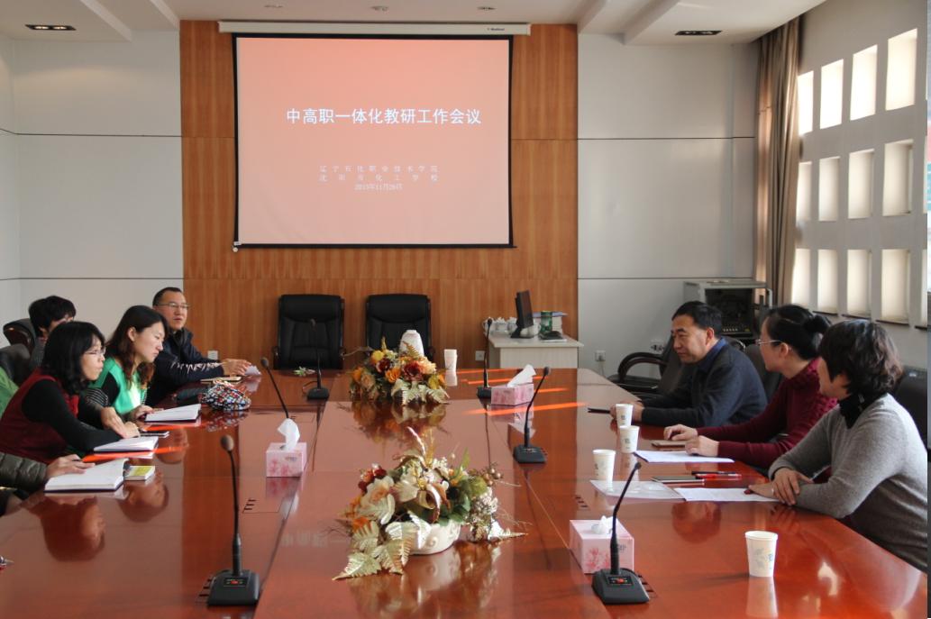 一行三人受到沈阳化工学校陈玉亮副校长、升学指导处莽宇处长、应用化学系牛华峰主任等领导教师的盛情接待,陈副校长主持了会议,他对两所院校近几年的合作、交流给予了充分的肯定和赞扬,特别是成立辽宁省石化职教集团以来,以集团成员的名义开展了富有实效的互动、交流,在专业建设、课程改革与建设、实训室建设、学生技能培养等方面进行沟通交流,取长补短,互惠双赢。